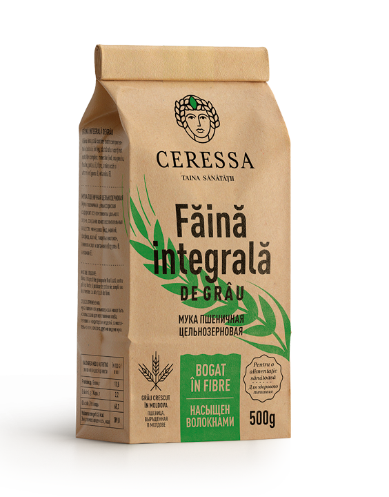 Făina integrală conține toate componentele bobului de grâu, păstrând un conținut nutritiv complex: minerale (magneziu, fosfor, potasiu), fibre, aminoacizi și vitamine (gama B, vitamina E). Produsele din făina integrală au un continut mai scăzut în calorii decât produsele din făină albă și ajută la reglarea zahărului din sânge. Consumul produselor din făină integrală reduce riscul de boli cardiace prin scaderea nivelului de colesterol, a tensiunii arteriale și a vitezei de coagulare a sângelui, îndepărtează eficient substanțele nocive și metalele grele din organism.